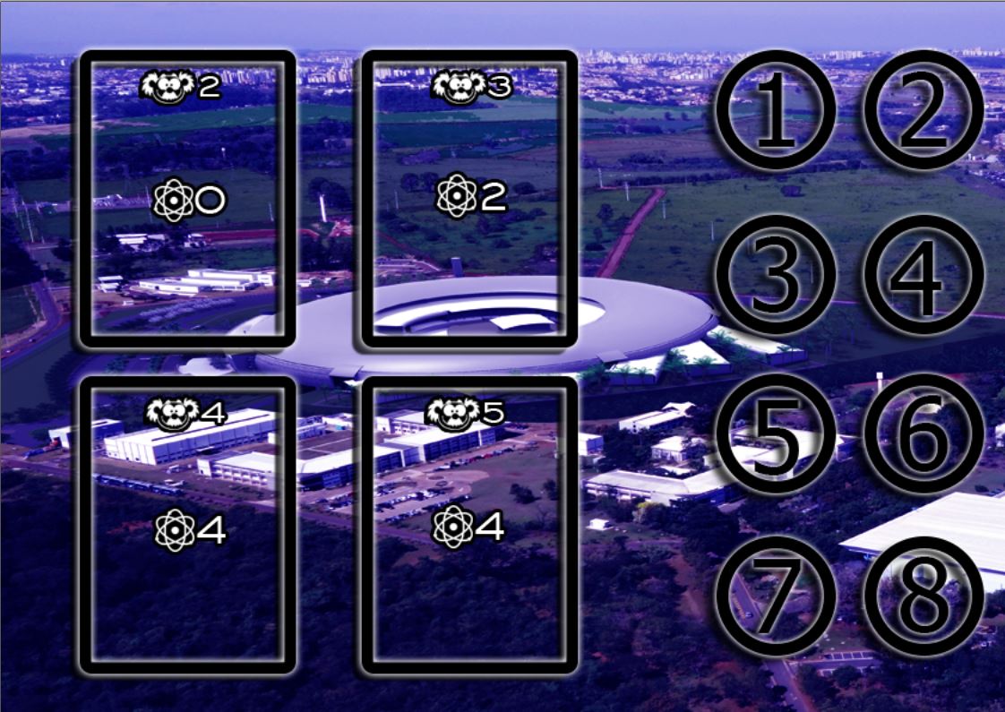 Jogo produzido pelos alunos Daniel Fedel Cabral, Gustavo Nascimento Polizeli e Vinícios de Souza Paulus, na atividade de Jogos para o ensino de Física na disciplina de Estágio Supervisionado em Física III do 4º ano do curso de Licenciatura em Física da UEM em 2018.